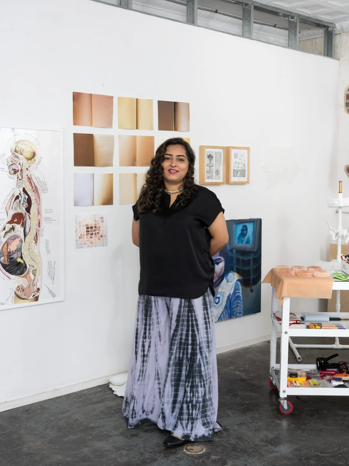 She earned a BFA at the National College of Arts, Lahore (2013) and an MFA from the Massachusetts College of Art and Design (2018) through a Fulbright Scholarship.